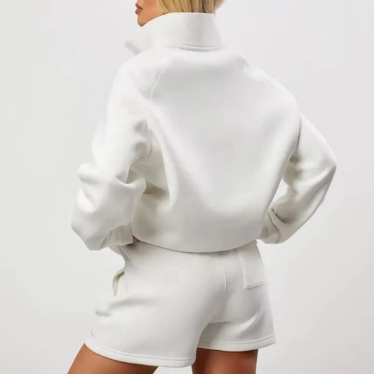 Women’s Quarter Zip Sweatshirt – Oversized Fleece Pullover - WHITE